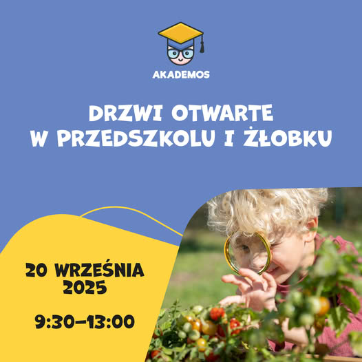 Aktualności Co nowego w żłobku od października? 19 września 2025 Czytaj więcej Nowy rok żłobkowy – nowe przygody! 05 września 2025 Czytaj więcej Drzwi otwarte w AKADEMOS 04 września 2025 Czytaj więcej Coś się kończy, coś zaczyna… 27 sierpnia 2025 Czytaj więcej Biegacze i Żeglarze w ruchu! 28 lipca 2025 Czytaj więcej Kreatywne Maluchy 17 lipca 2025 Czytaj więcej Przedstawienie o upływającym czasie 05 czerwca 2025 Czytaj więcej Kino sferyczne z okazji Dnia Dziecka! 28 maja 2025 Czytaj więcej Teatrzyk PantoMimka w naszym żłobku 21 maja 2025 Czytaj więcej Zajęcia z Sensoplastyki – czyli zabawa która pobudza zmysły! 12 maja 2025 Czytaj więcej Święta Wielkanocne w żłobku 18 kwietnia 2025 Czytaj więcej Przedstawienie „Wielkanocne Czary Mary” 15 kwietnia 2025 Czytaj więcej Wiosenne spacery i aktywności 09 kwietnia 2025 Czytaj więcej Dzień marchewki – zajęcia z Sensoplastyki 05 kwietnia 2025 Czytaj więcej Wizyta żłobkowiczów w bibliotece 06 marca 2025 Czytaj więcej Balik przebierańców 14 lutego 2025 Czytaj więcej Zabawy pełne radości 12 lutego 2025 Czytaj więcej Zajęcia z Sensoplastyki 11 stycznia 2025 Czytaj więcej Pokaz baniek mydlanych dla Najmłodszych 09 stycznia 2025 Czytaj więcej Świąteczne przedstawienie 12 grudnia 2024 Czytaj więcej Odwiedziny Świętego Mikołaja w żłobku 06 grudnia 2024 Czytaj więcej Dogoterapia w żłobku 30 listopada 2024 Czytaj więcej Zajęcia muzyczne dla naszych Najmłodszych 18 października 2024 Czytaj więcej Zajęcia sportowe Biegaczy i Żeglarzy 03 października 2024 Czytaj więcej Jesienne prace plastyczne 02 października 2024 Czytaj więcej Dzień przedszkolaka w żłobku 20 września 2024 Czytaj więcej Zmieniamy się dla naszych Najmłodszych 23 sierpnia 2024 Czytaj więcej Święta Wielkanocne u Małych Detektywów 11 kwietnia 2024 Czytaj więcej Sensoplastyka w żłobku 16 lutego 2024 Czytaj więcej Małe aktywności Małych Detektywów 15 lutego 2024 Czytaj więcej Zapracowani Mali Detektywi 14 lutego 2024 Czytaj więcej W krainie bajek 14 lutego 2024 Czytaj więcej Mali Poszukiwacze rozwijają motorykę dużą 06 grudnia 2023 Czytaj więcej Tydzień małych detektywów 14 października 2023 Czytaj więcej Kolorowa jesień! 07 października 2023 Czytaj więcej Farma małych detektywów 01 października 2023 Czytaj więcej Mali kucharze! 24 września 2023 Czytaj więcej Smakowite galaretki! 30 lipca 2023 Czytaj więcej MALI POSZUKIWACZE w akcji! 23 lipca 2023 Czytaj więcej Tydzień kolorów u małych Poszukiwaczy 03 lipca 2023 Czytaj więcej Mali poszukiwacze figlują w kisielu! 25 czerwca 2023 Czytaj więcej Zabawy z farbami 03 czerwca 2023 Czytaj więcej MALI POSZUKIWACZE TAPUJĄ! 20 maja 2023 Czytaj więcej Marchewki! 11 maja 2023 Czytaj więcej Ślimak, ślimak, pokaż rogi… 15 kwietnia 2023 Czytaj więcej Malujemy na folii! 02 kwietnia 2023 Czytaj więcej Wiosno, przyjdź! 19 marca 2023 Czytaj więcej Jak Kolorowo! 05 marca 2023 Czytaj więcej 1 2 Następne » Załaduj więcej