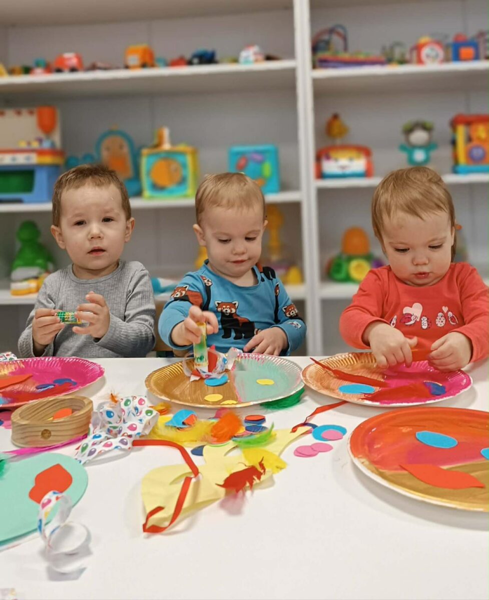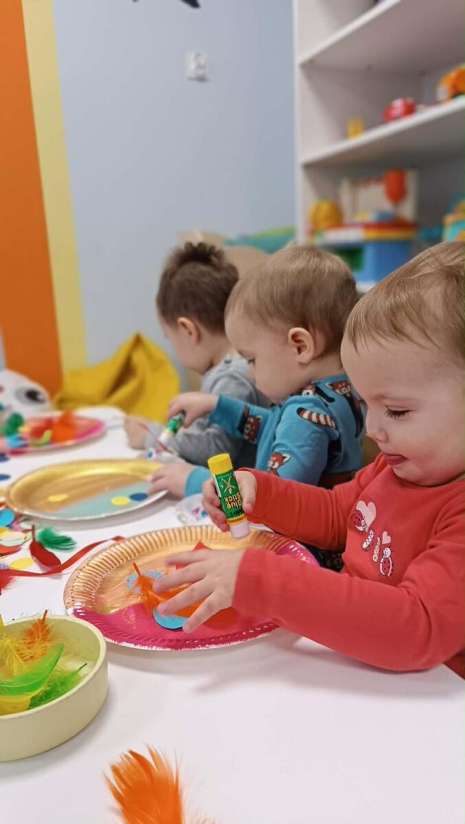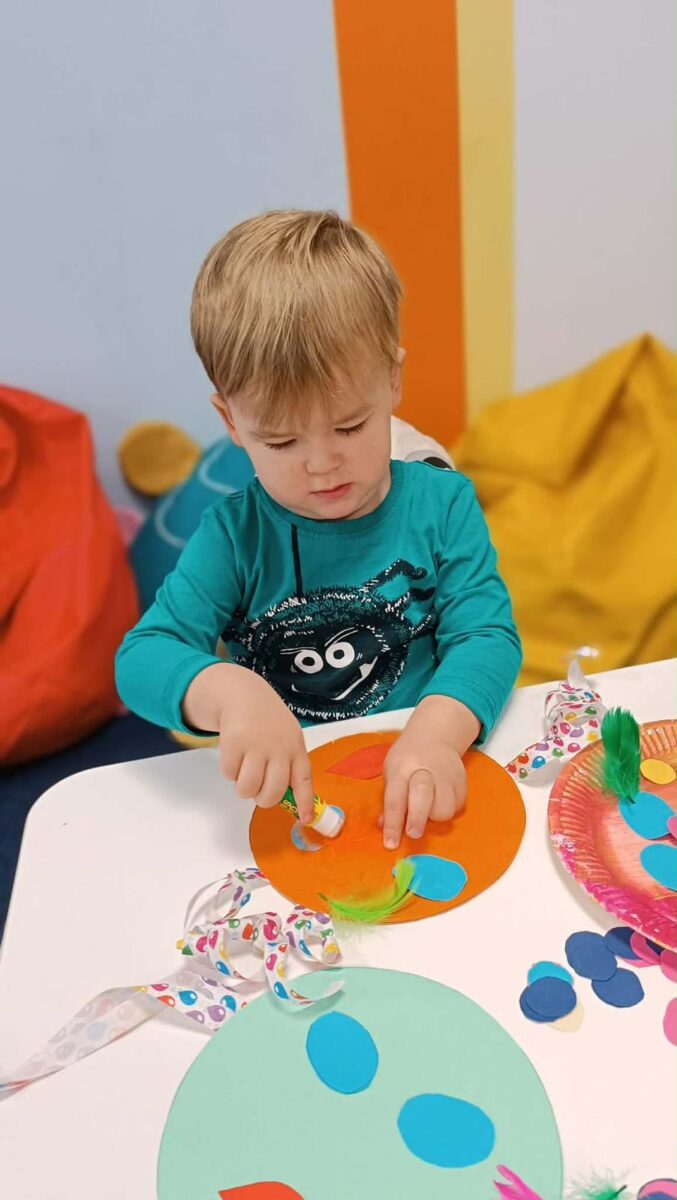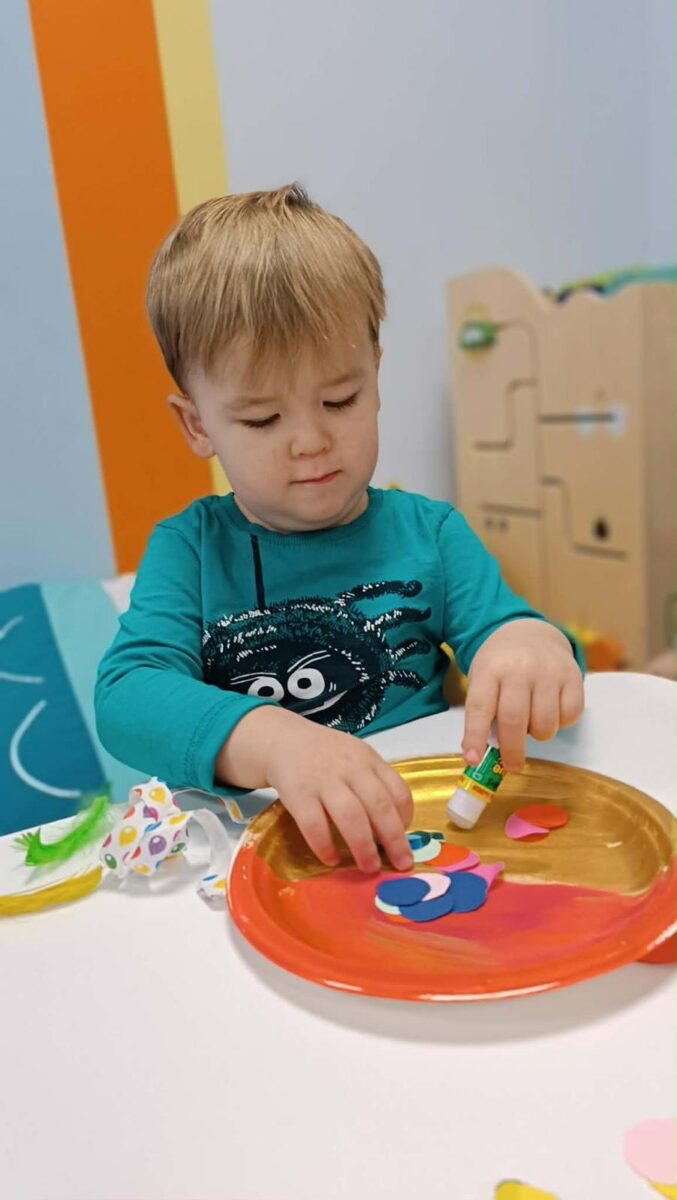 Podczas zajęć plastycznych dzieci z radością tworzyły barwne prace, rozwijając wyobraźnię, kreatywność i sprawność małych rączek. Było dużo kolorów, swobody twórczej i uśmiechu – prawdziwa radość tworzenia 🌈💛